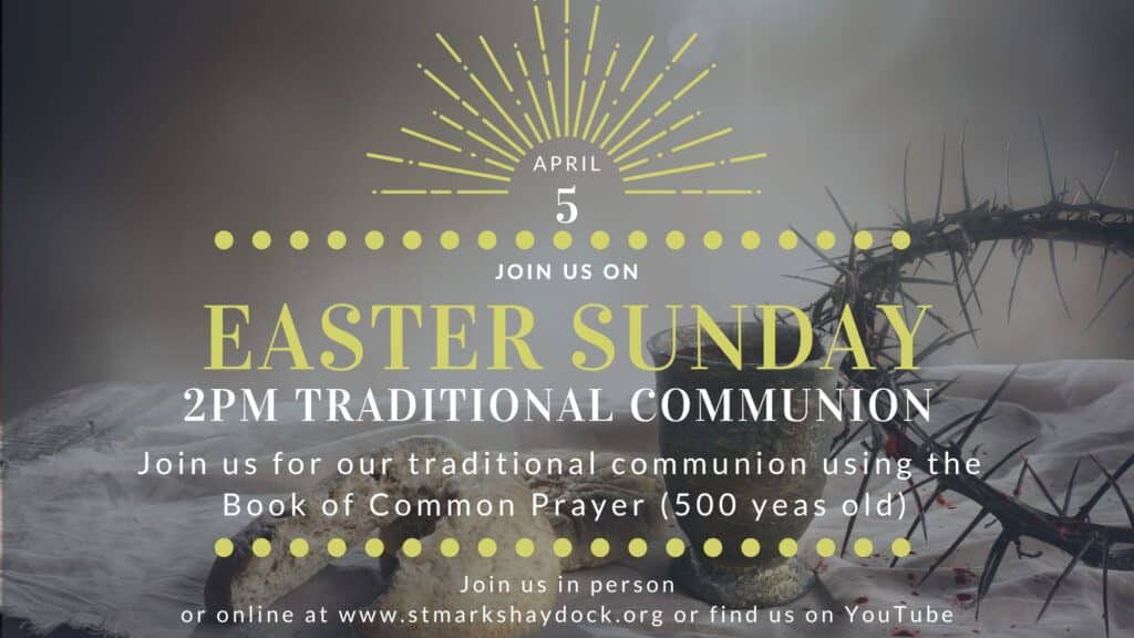 Using the prayer book with all its Thees and Thous, this traditional service celebrates Jesus’ rising from the dead and focuses our hearts on greeting Him and inviting Him to live with us forever.