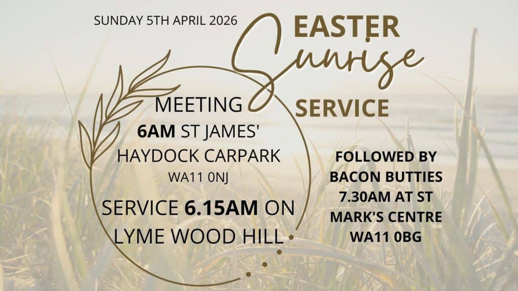 Meeting at St James’ church’s carpark at 6am to walk to the top of the LymeWood Country Park on Easter morning, gathering the churches of Haydock.